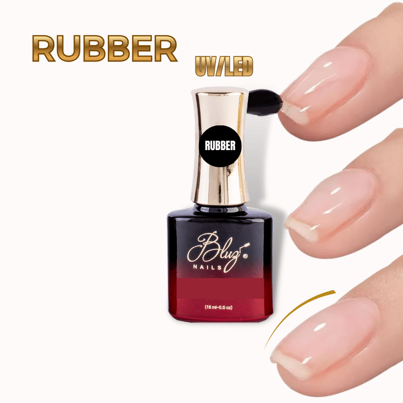 Prepara la uña, aplica una capa fina de Rubber Base y cura. Continúa con color y finaliza con Top Finish. No retires la capa pegajosa.
