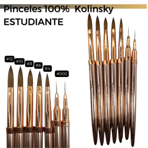 Pinceles profesionales de 100% pelo Kolinsky, diseñados para un control perfecto de líquidos y polvos acrílicos. Los tamaños #8, #10, #12 y #14 son ideales para aplicación completa en acrílico. Su cabello resistente no se abre ni se deforma con el cuidado adecuado. Incluyen tapa protectora (excepto #14). Diseño elegante negro con detalles Bluz Nails, perfectos para profesionales y principiantes.