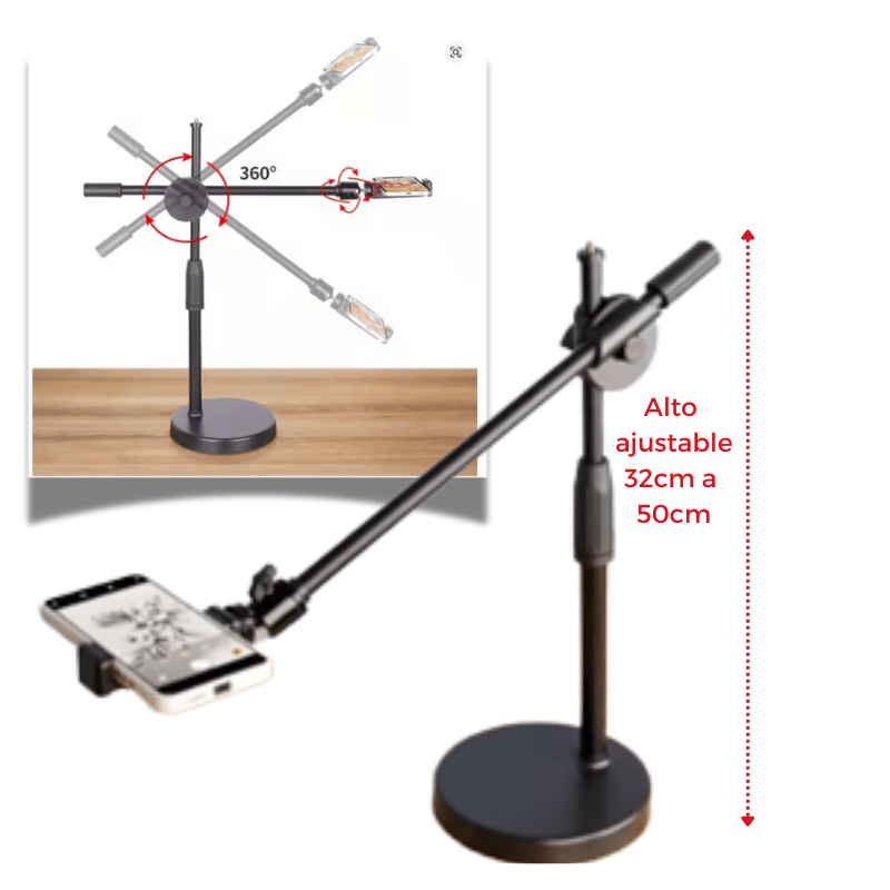 • Multifuncional: perfecto para enseñanza en línea, producción de video universal y transmisión en vivo, este soporte ajustable para teléfono permite personalizar el ángulo y la altura para lograr la toma ideal.